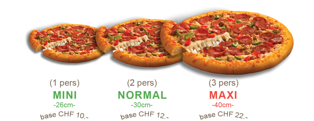 (Pain nu sans sauce ni mozza) et les Ingredients à votre choix (base 7.-CHF + choix ci-dessous)